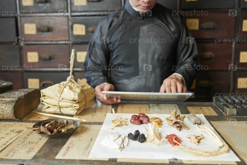 Сухие травы, грибы и ягоды на стойке