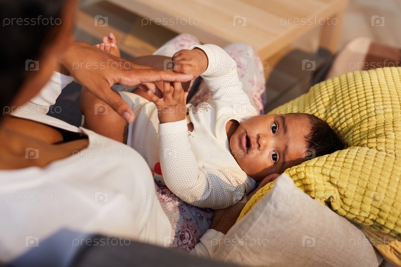 Черный ребенок прикасается к пальцам матери