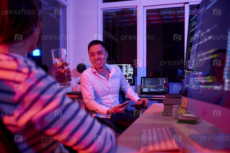 Коллеги по бизнесу, работающие ночью в офисе