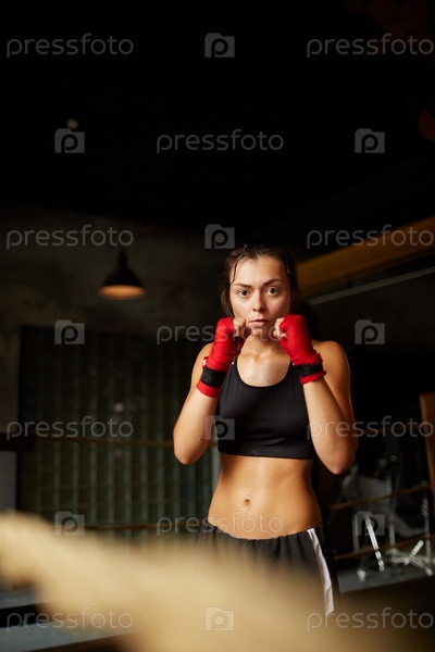 Красивая молодая женщина на тренировке бокса