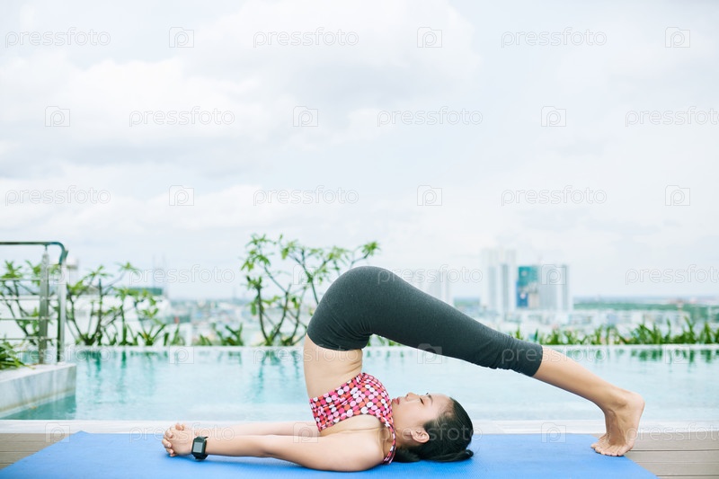 Женщина, занимающаяся на тренажерном коврике