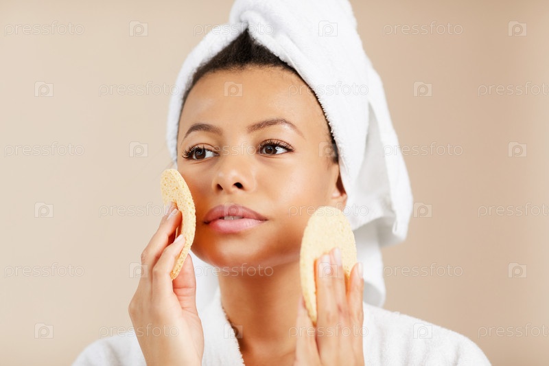 Красивая женщина, наслаждающаяся уходом за кожей