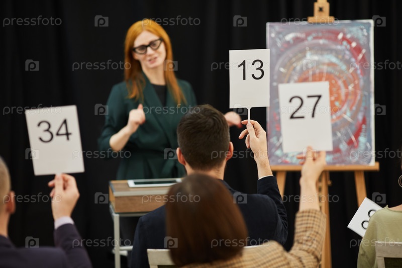 Женщина, проводящая аукцион для людей