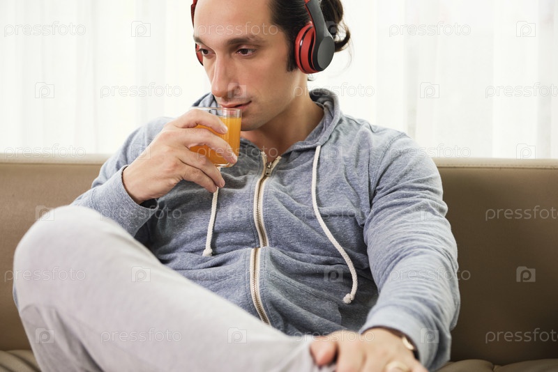 Мужчина с соком, отдыхающий дома
