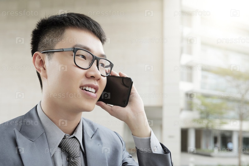 Улыбающийся говорящий предприниматель