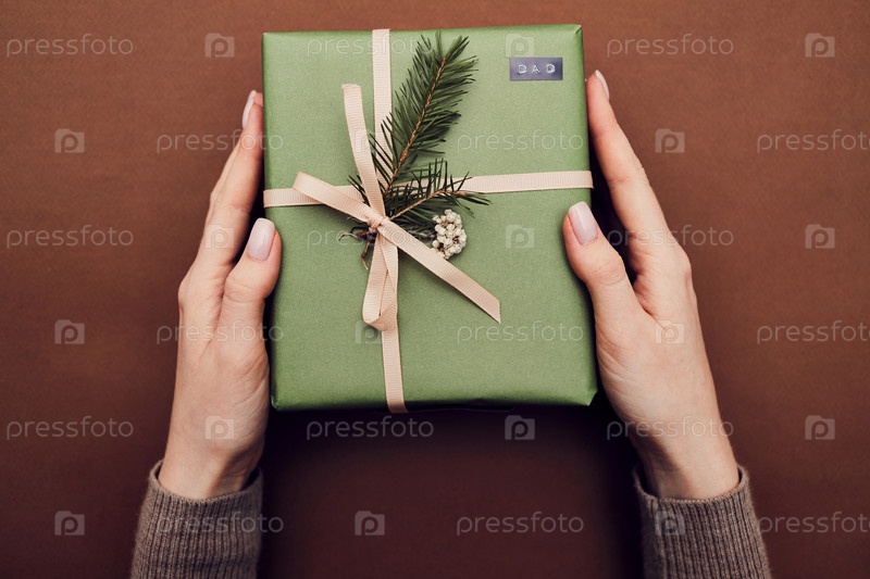 Женщина держит рождественский подарок
