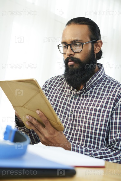 Бизнесмен, работающий онлайн на планшетном компьютере