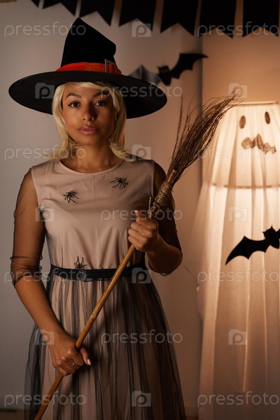 Молодая женщина в одежде ведьмы