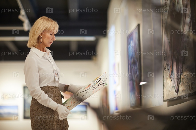 Женщина-эксперт по искусству, держащая картину
