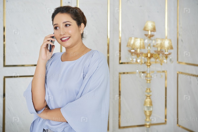 Деловая женщина, разговаривающая по мобильному телефону
