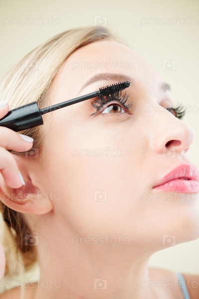 Женщина, наносящая черную маскару