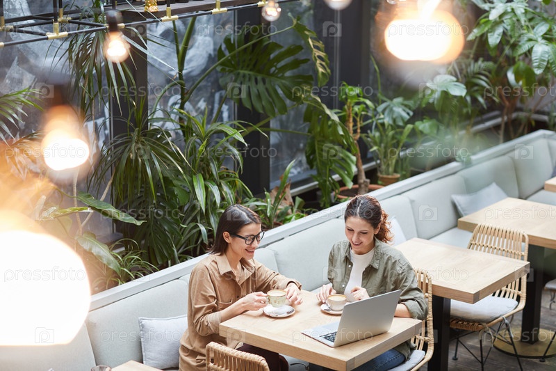 Современные женщины наслаждаются кофе в открытом кафе
