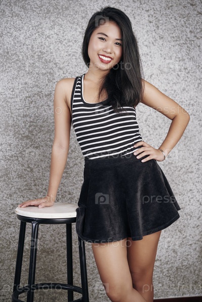Азиатская модель позирует с креслом