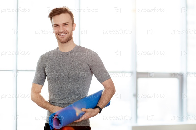 Красивый инструктор по йоге с матом для упражнений