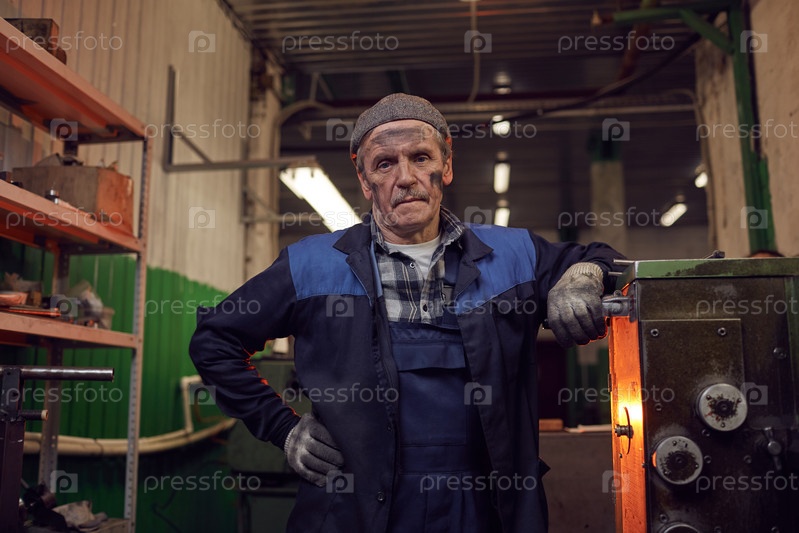 Зрелый работник на заводе