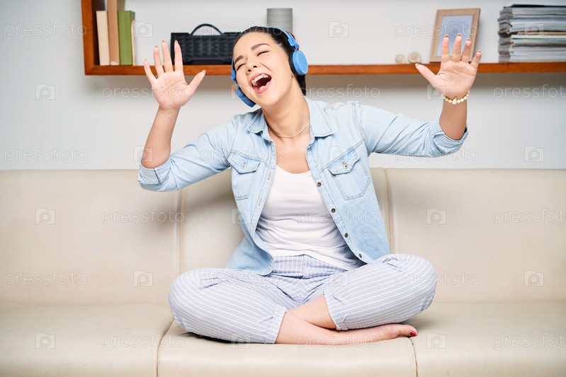 Женщина поет песню дома