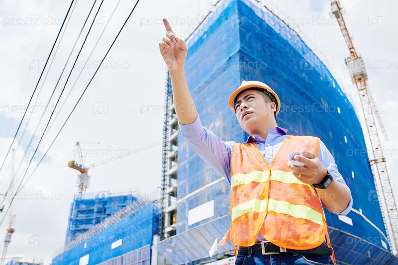 Нахмурившийся подрядчик на строительной площадке