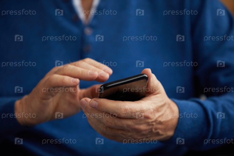 Старший мужчина, держащий смартфон