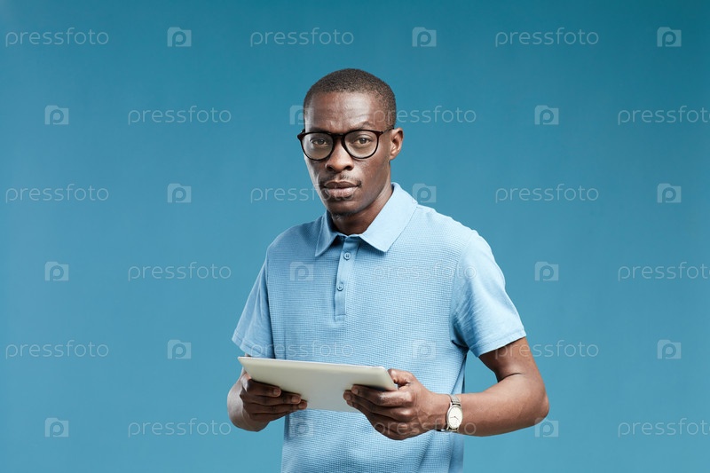 Африканский мужчина с цифровым планшетом
