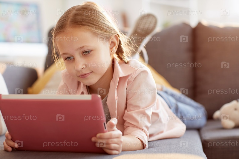 Милая девочка, использующая планшет