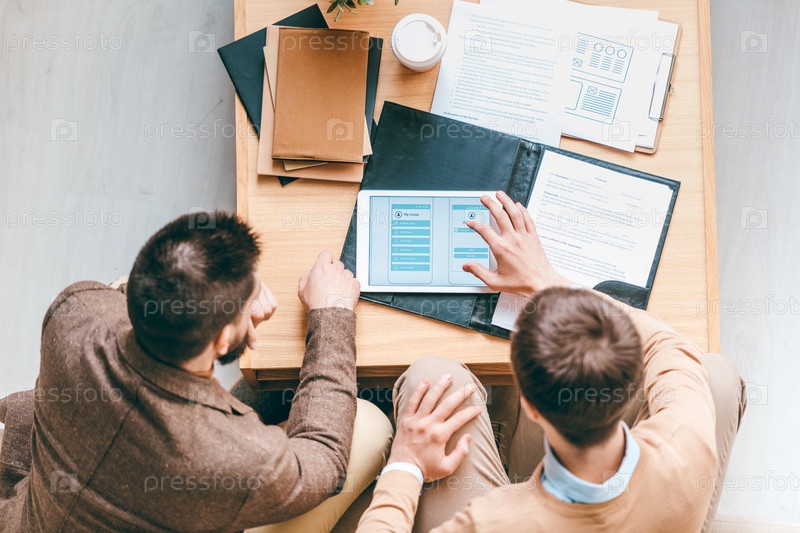 Один из молодых разработчиков программного обеспечения делает презентацию нового приложения