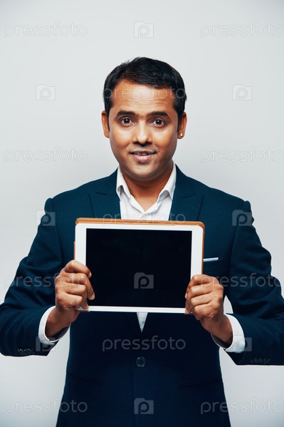 Бизнесмен показывает дисплей планшетного компьютера