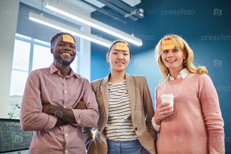 Бизнес-группа играет в игру 'Кто я?'