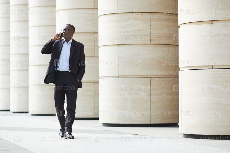 Афроамериканский бизнесмен, гуляющий по городу