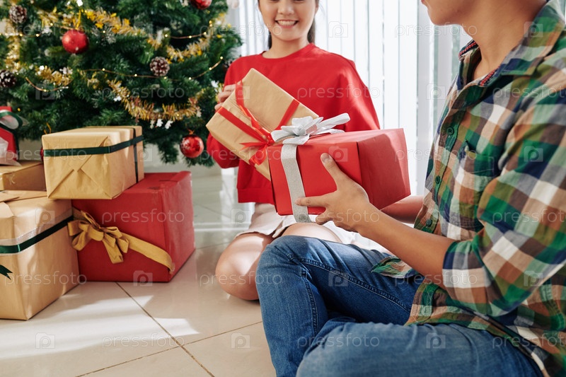 Подростки обмениваются рождественскими подарками