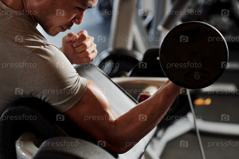 Мужчина накачивает свои бицепсы