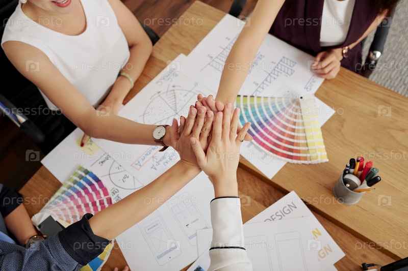 Команда дизайнеров, работающих на встрече