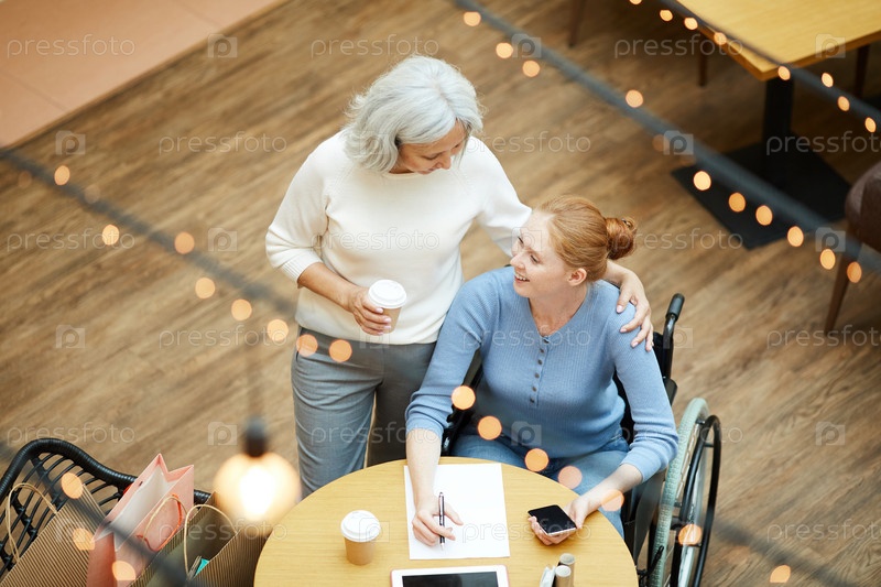Семья из двух человек собирается в кафе