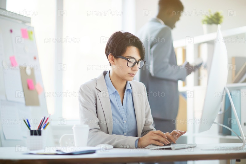 Молодая женщина, работающая в офисе