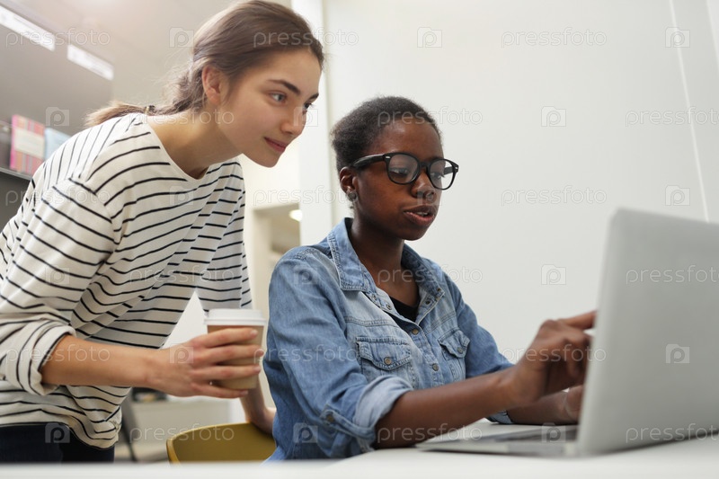 Два коллеги обсуждают работу в Интернете
