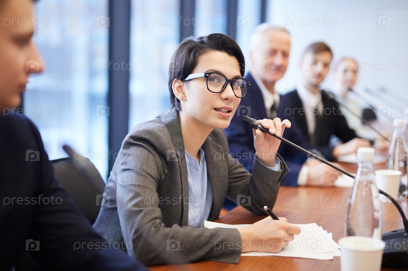 Деловая женщина, выступающая на конференции Young