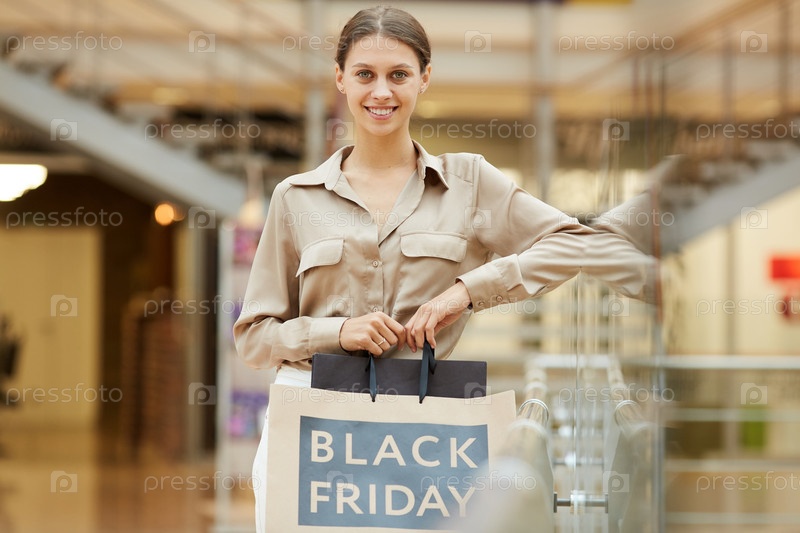 Счастливая девушка с сумками для покупок