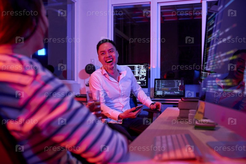 Деловые люди, весело проводящие время в процессе работы