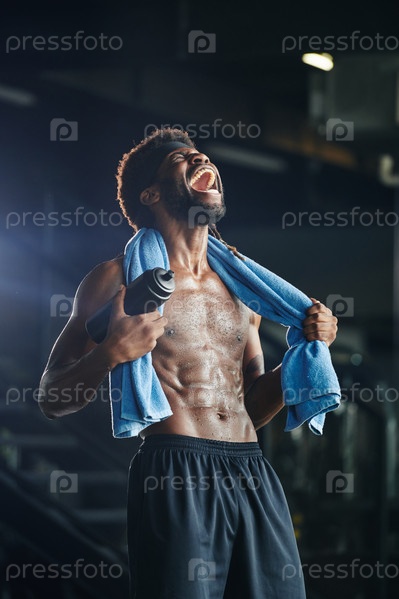 Потный кричащий спортсмен