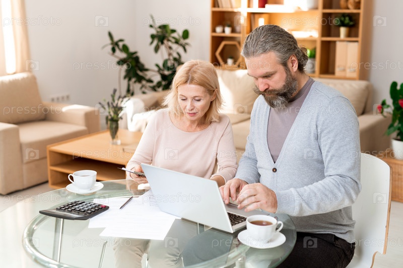 Зрелый бизнесмен концентрируется на сети, в то время как его коллега читает документ