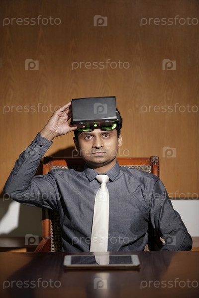 Серьезный бизнесмен надевает очки VR