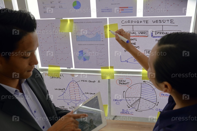 Бизнесмены, работающие с финансовыми диаграммами