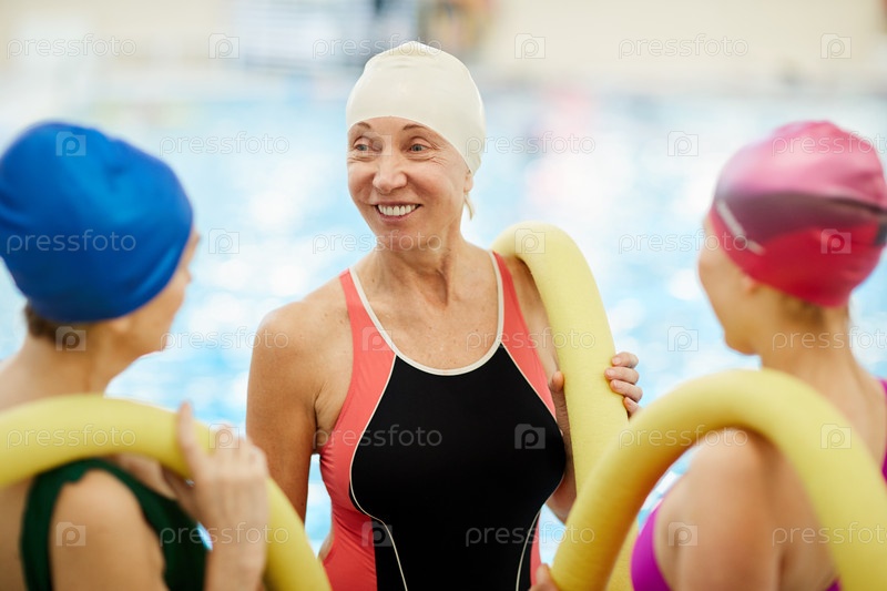 Старшие женщины, общающиеся в бассейне