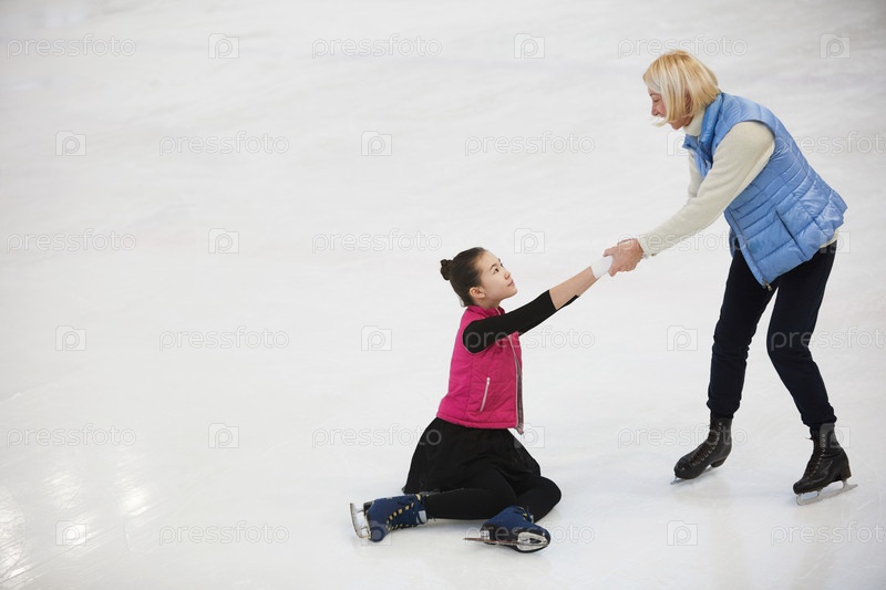 Женщина помогает девушке встать