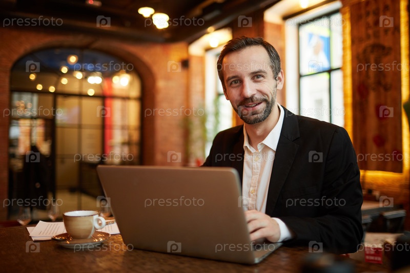 Зрелый бизнесмен, работающий в ресторане