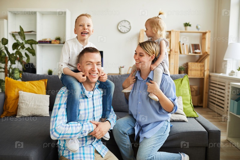 Дети ездят на шеях родителей