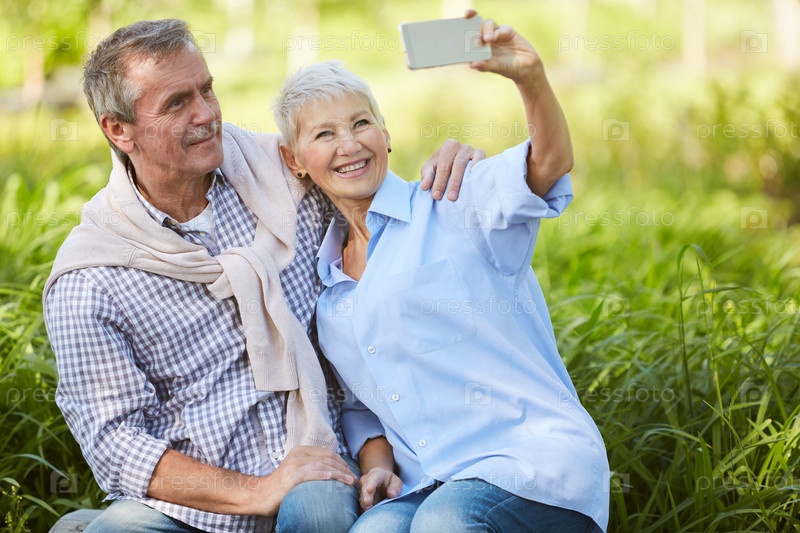 Старшая пара делает селфи