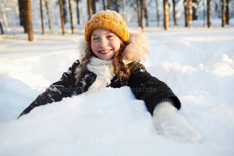 Счастливая девочка, играющая в снегу