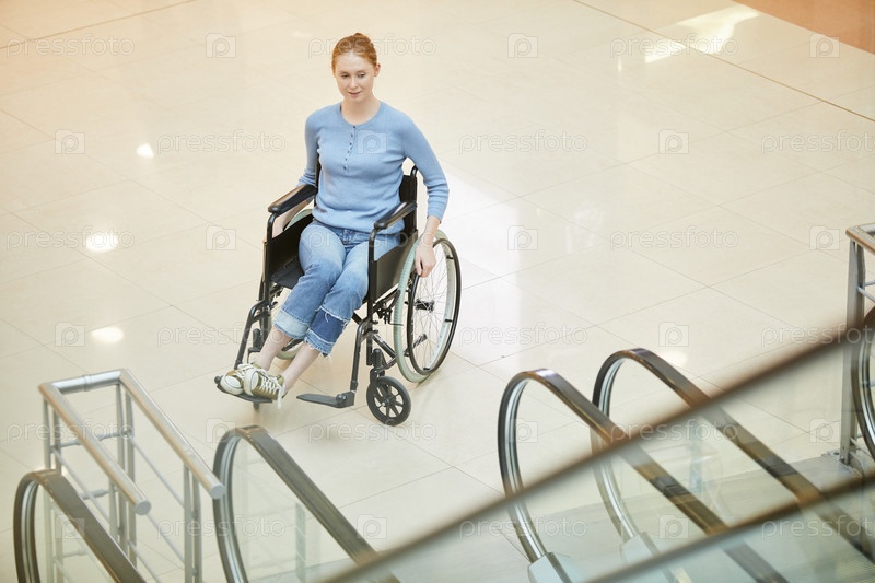 Инвалидная женщина в современном здании