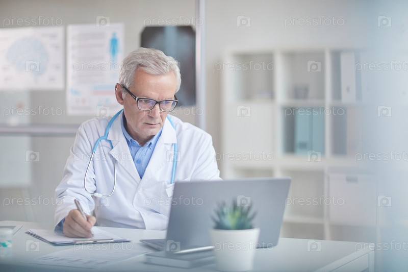 Старший врач, работающий в офисе