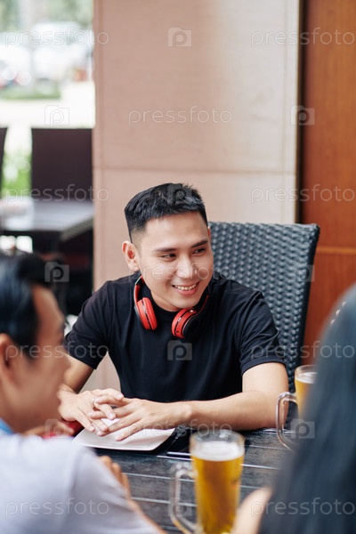 Счастливый мужчина отдыхает в кафе